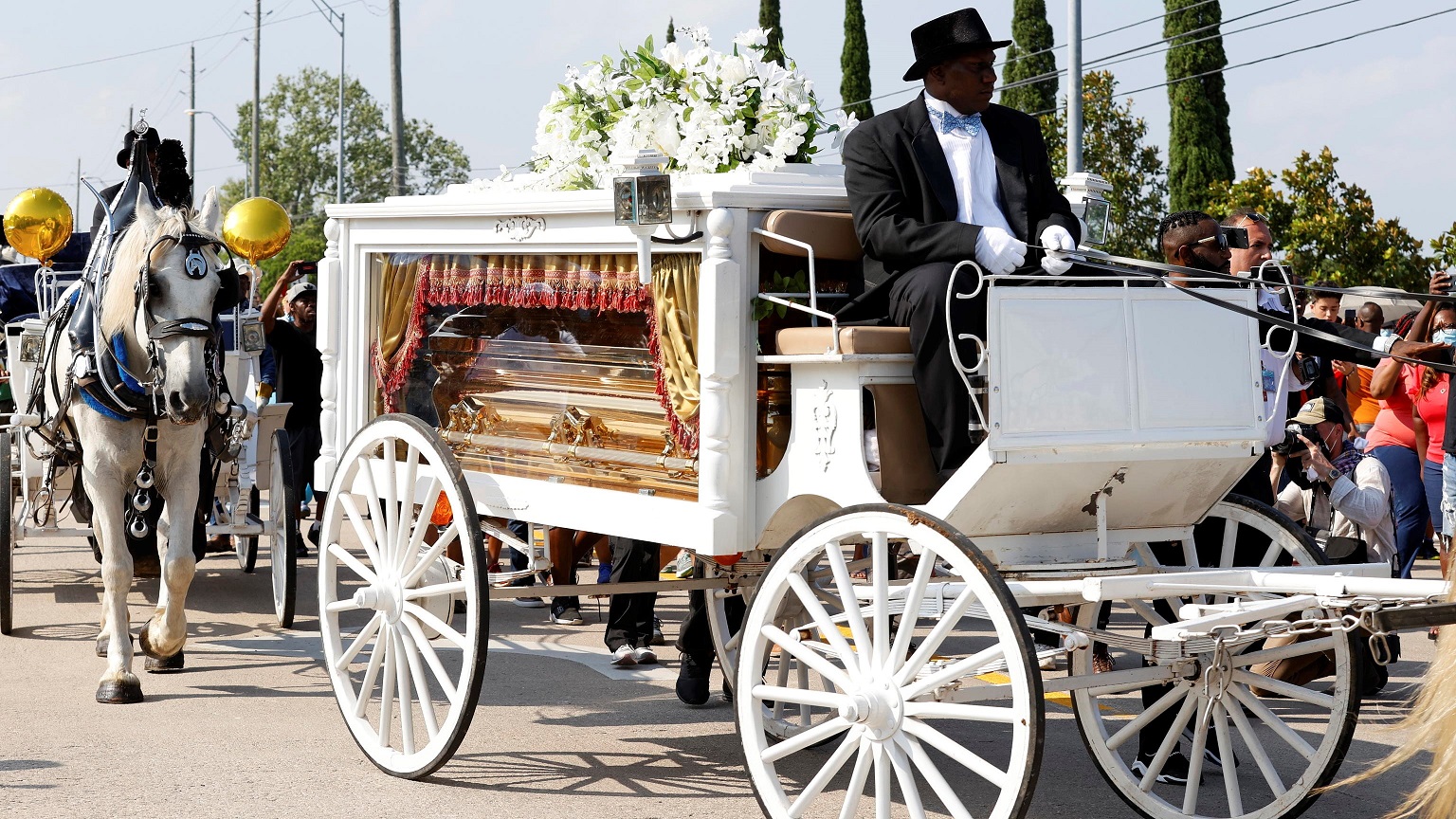 Austin, 13 giugno 2020 – E’ stata una pariglia di cavalli grigi attaccati a un carro funebre in stile molto americano ad accompagnare il corpo di George Floyd nel suo ultimo viaggio, quello verso lo Huston Memorial Gardens dove è stato tumulato il 9 giugno scorso.