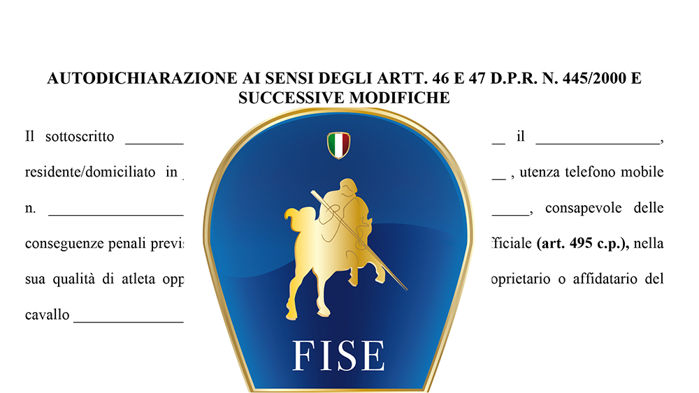 Tale autodichiarazione prende in considerazione tutte le varie possibilità che riguardano il mondo degli sport equestri (partecipazione agli allenamenti, partecipazioni alle gare autorizzate, istruttori, accompagnatori etc).
