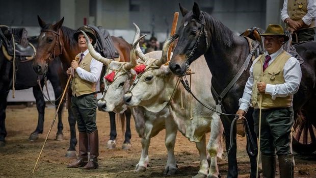 Perché quest’anno a causa dei problemi relativi alla Blue Tongue buoi e manzette che sono parte di tanti spettacoli incentrati sulla nostra monta da lavoro tradizionale non sono potuti venire in fiera.