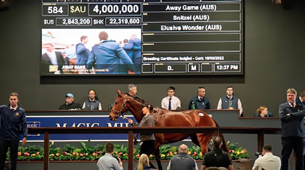Anche dopo questa straordinaria vendita, Away Game rimarrà in Australia. Nel suo futuro ancora qualche corsa e poi una carriera da mamma.