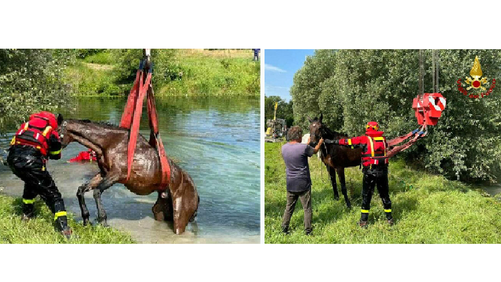 Con il supporto e l’assistenza costante di un veterinario che ha seguito incessantemente tutte le operazioni, il cavallo è stato tranquillizzato, immobilizzato e quindi imbragato per poterlo sollevare e riportare su un terreno più stabile.