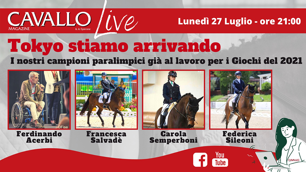 I nostri atleti del paradressage risponderanno alle domande del pubblico e ci racconteranno qualcosa del loro modo di fare sport, dei loro sogni e delle loro ambizioni. Li faremo parlare di Tokyo, dei loro cavalli e di come quotidianamente lavorano per essere agonisti di vertice.