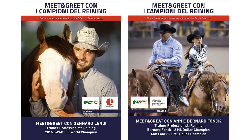 Gianni Guidolin offre la possibilità d’incontrare e conoscere i campioni indiscussi della disciplina del Reining, che a seguito di una breve intervista, saranno disponibili a rispondere alle domande dei fan ed intrattenersi con loro.